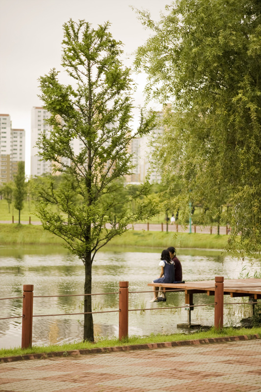 호수공원에 놀러온 커플.